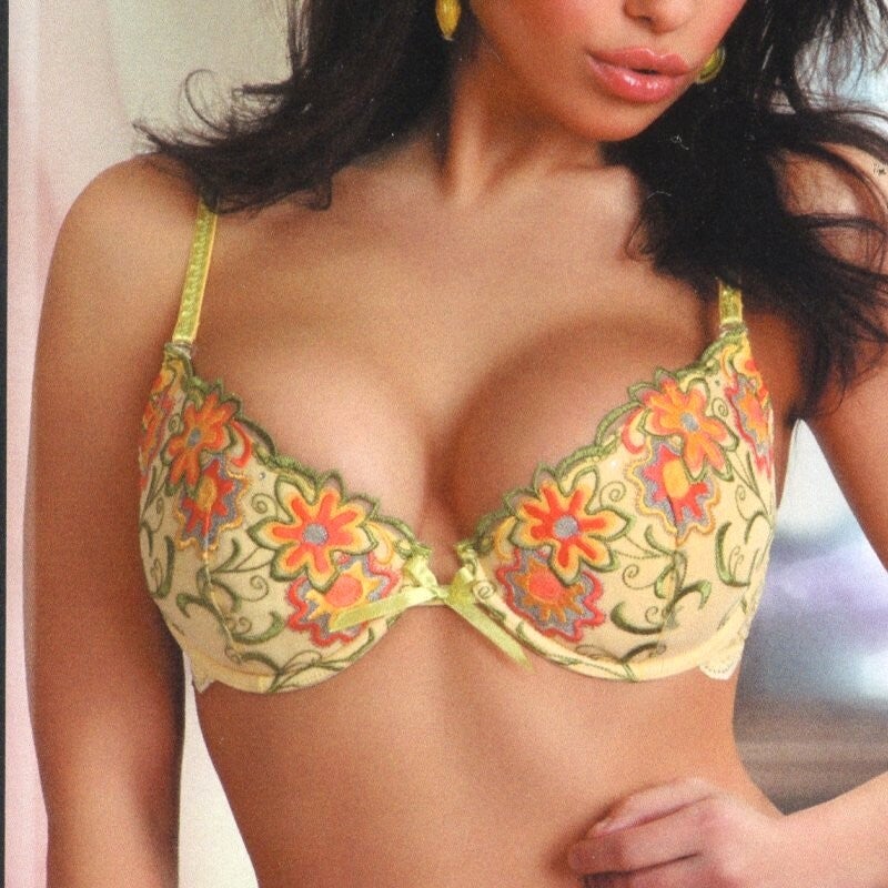 Soutien-gorge push-up multicolore avec de belles guipures et dentelles.